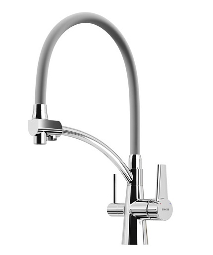 - Гибкий излив более маневренный, чем обычный, и позволяет настроить высоту и угол излива под любые нужды.