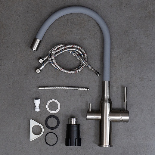 Комплектация: смеситель, переходник для фильтра, комплект подводки.