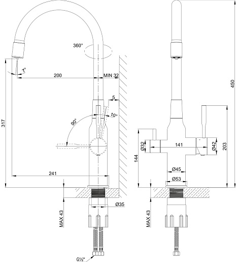 - Гибкий излив.