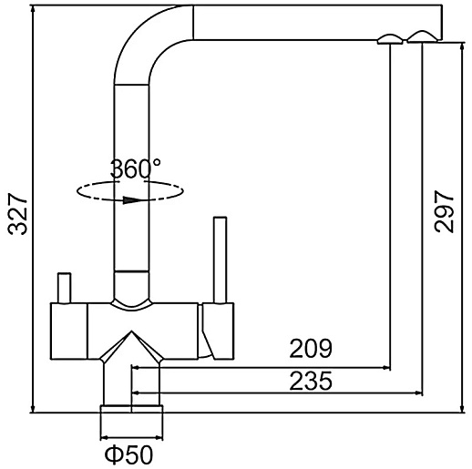- Подача питьевой воды: через дополнительный излив.