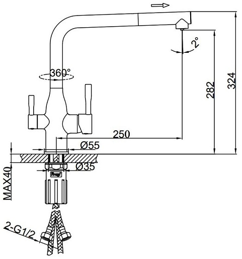 - Подача питьевой воды: через совмещенный излив.