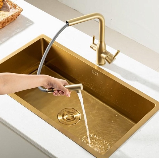 - Смеситель с выдвижным изливом удобен для мытья крупной посуды, мойки и наполнения емкостей.