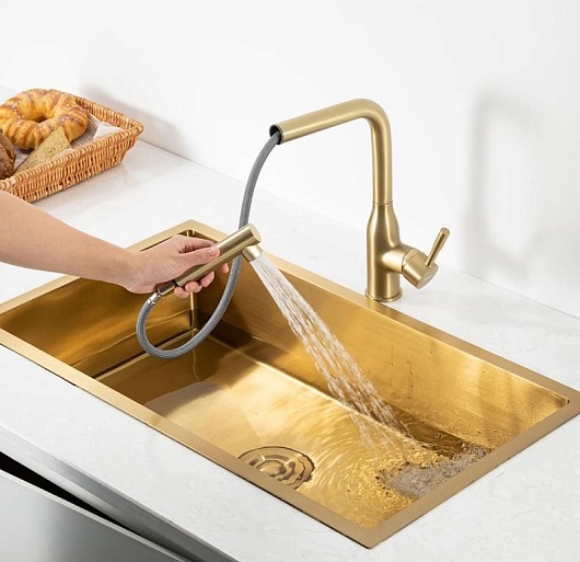 - Смеситель с выдвижным изливом удобен для мытья крупной посуды, мойки и наполнения емкостей.