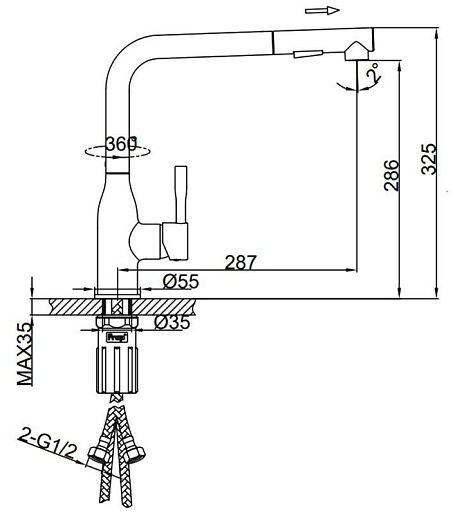- Длина излива: 28.7 см.