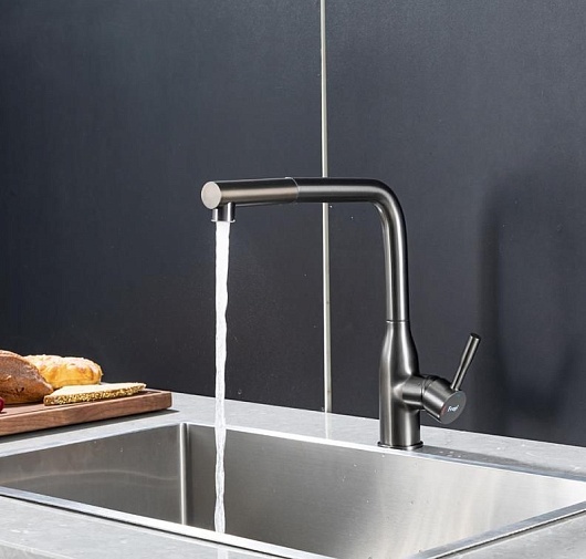 - Смеситель с выдвижным изливом удобен для мытья крупной посуды, мойки и наполнения емкостей.