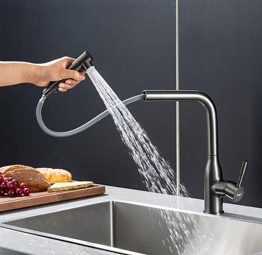 Frap Смеситель для кухни F6096-9 оружейная сталь