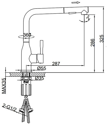 - Длина излива: 28.7 см.
