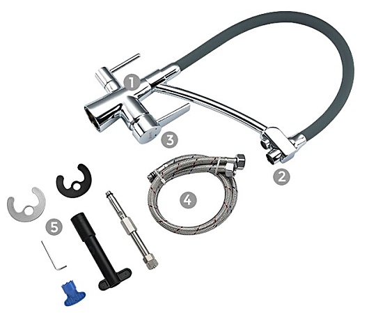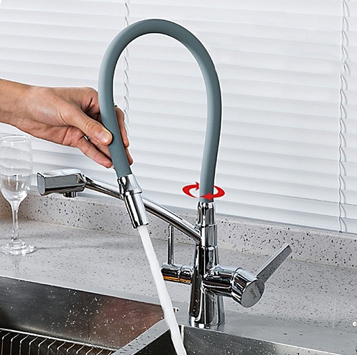 - Гибкий излив более маневренный, чем обычный, и позволяет настроить высоту и угол излива под любые нужды.