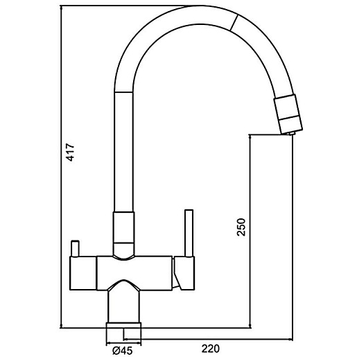 - Подача питьевой воды: через совмещенный излив.