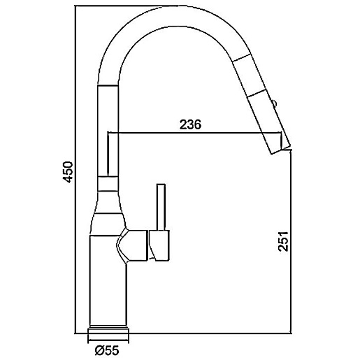 - Длина излива: 23.6 см.