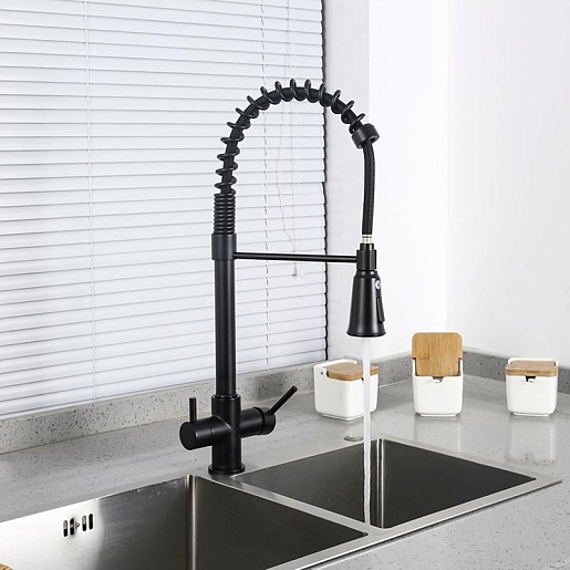 - Гибкий излив более маневренный, чем обычный, и позволяет настроить высоту и угол излива под любые нужды.