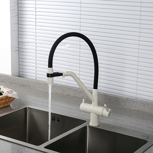 - Гибкий излив более маневренный, чем обычный, и позволяет настроить высоту и угол излива под любые нужды.