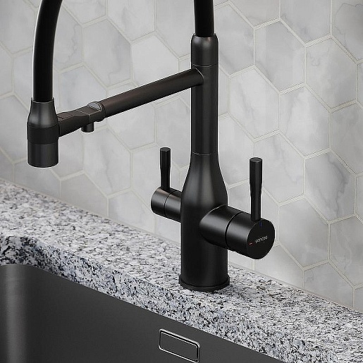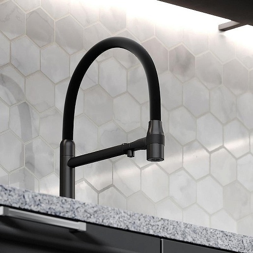 - Гибкий излив более маневренный, чем обычный, и позволяет настроить высоту и угол излива под любые нужды.