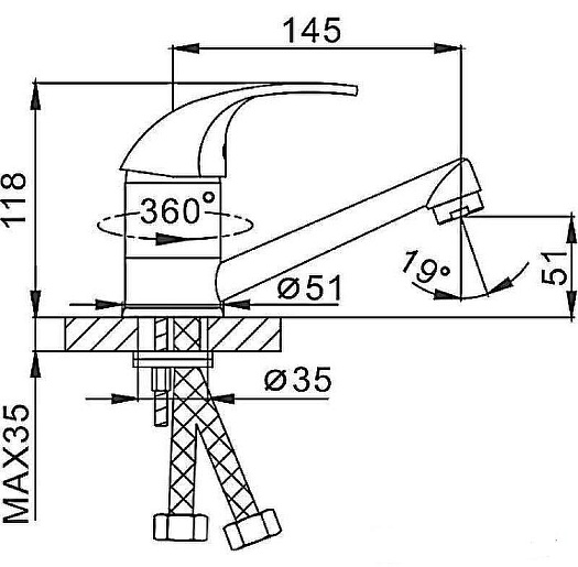 - Длина излива: 14.5 см.
