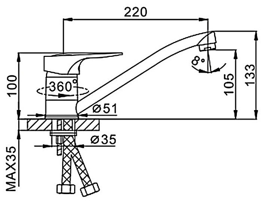 - Длина излива: 22 см.