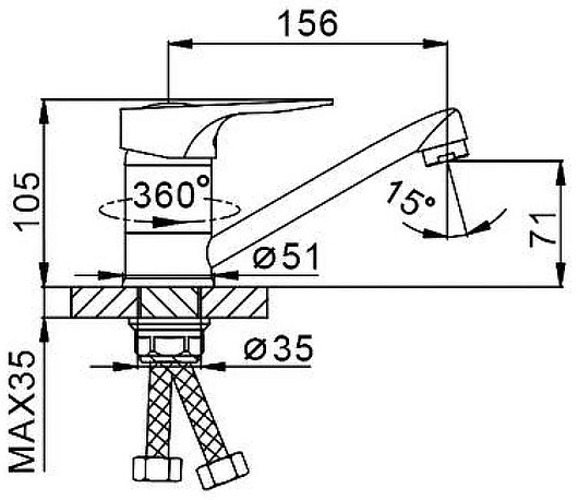 - Длина излива: 15.6 см.