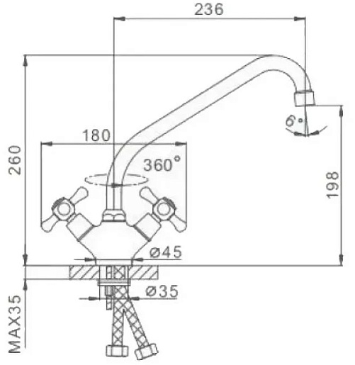 - Длина излива: 21 см.