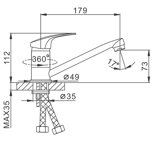 - Длина излива: 17.9 см.