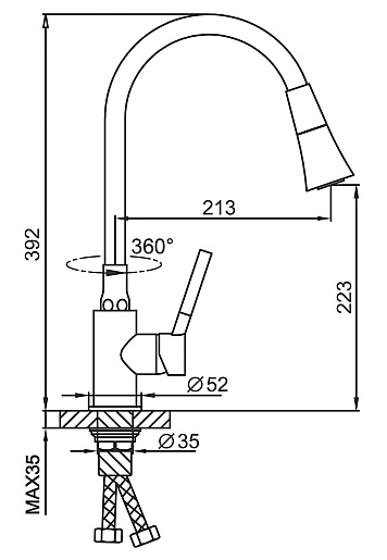 - Гибкий излив более маневренный, чем обычный, и позволяет настроить высоту и угол излива под любые нужды.