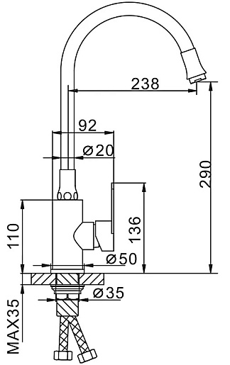 - Гибкий излив более маневренный, чем обычный, и позволяет настроить высоту и угол излива под любые нужды.