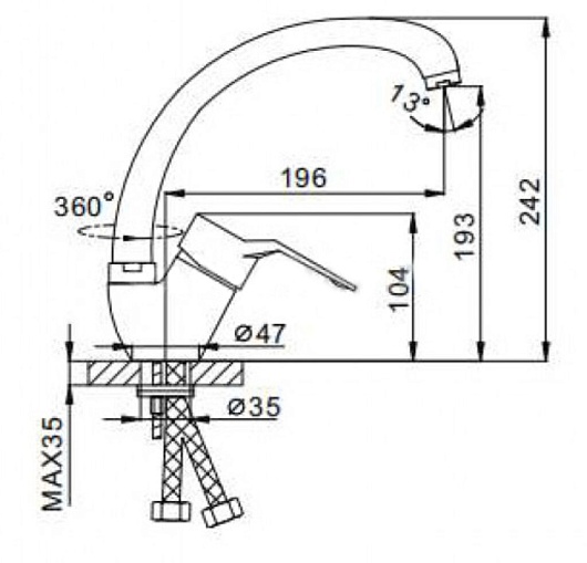 - Длина излива: 19.6 см.