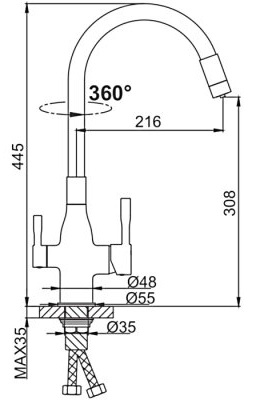 - Подача питьевой воды: через совмещенный излив.
