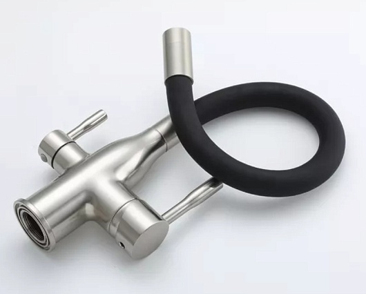 - Гибкий излив более маневренный, чем обычный, и позволяет настроить высоту и угол излива под любые нужды.