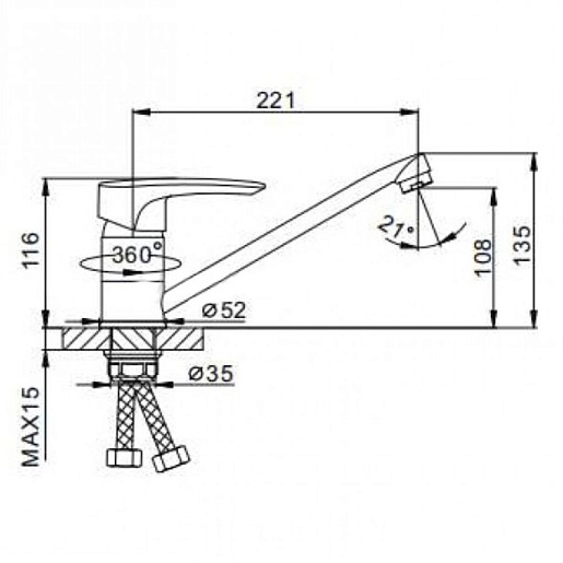 - Длина излива: 22.1 см.