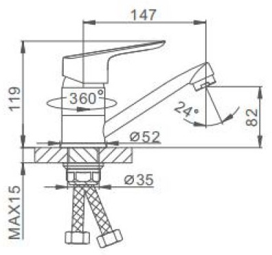 - Длина излива: 14.7 см.
