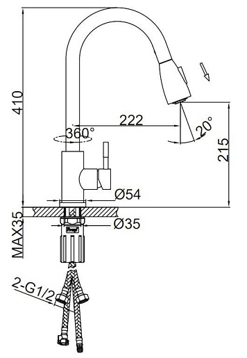 - Смеситель с выдвижным изливом удобен для мытья крупной посуды, мойки и наполнения емкостей.