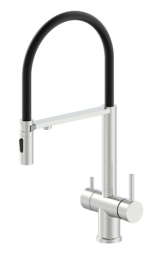 - Гибкий излив более маневренный, чем обычный, и позволяет настроить высоту и угол излива под любые нужды.