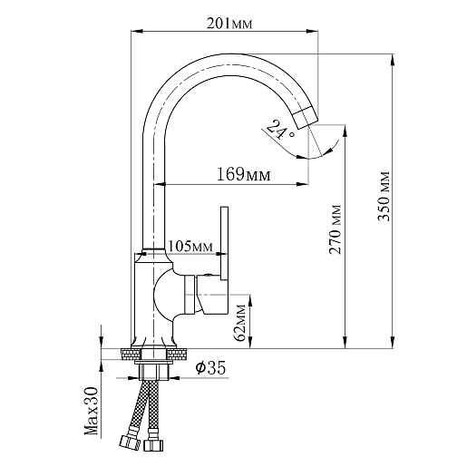 Tokito Смеситель для кухни KUDO чёрный TOK-KUD-1013