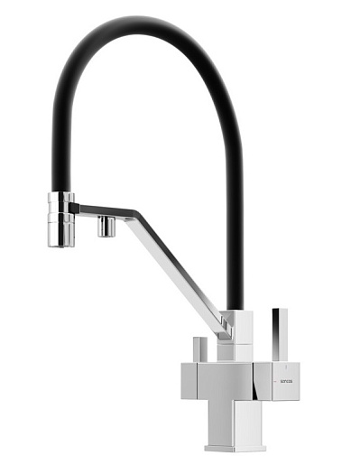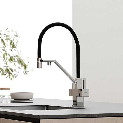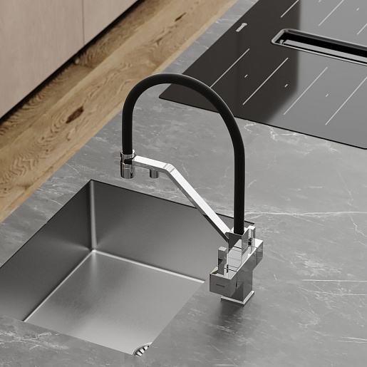 - Гибкий излив более маневренный, чем обычный, и позволяет настроить высоту и угол излива под любые нужды.