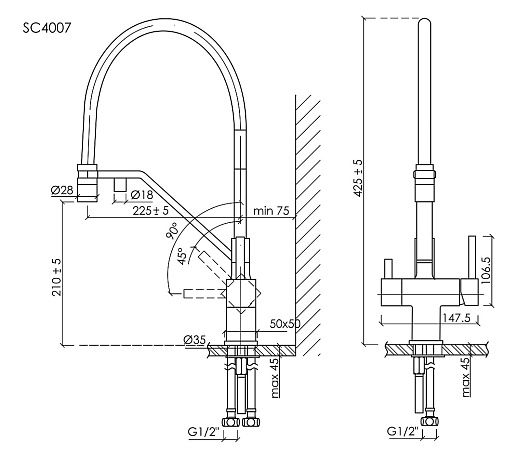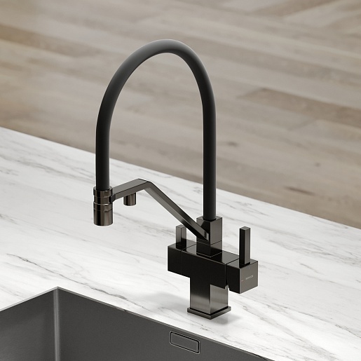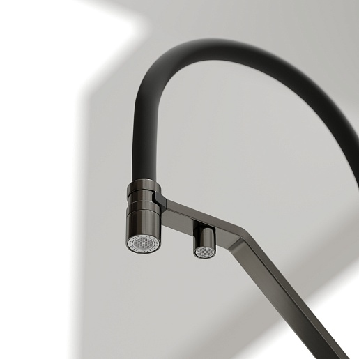 - Гибкий излив более маневренный, чем обычный, и позволяет настроить высоту и угол излива под любые нужды.