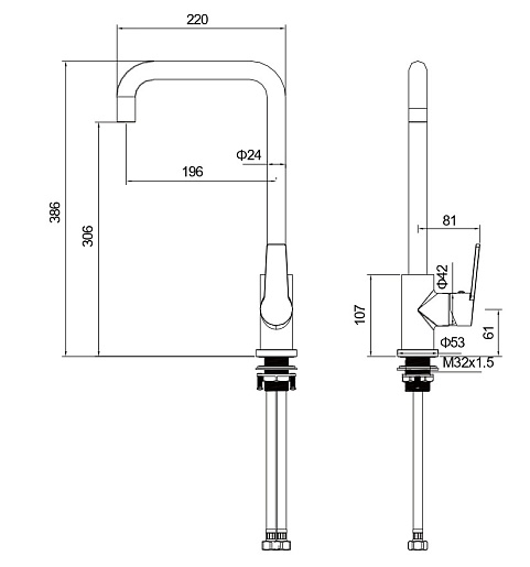 - Длина излива: 19.6 см.