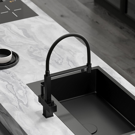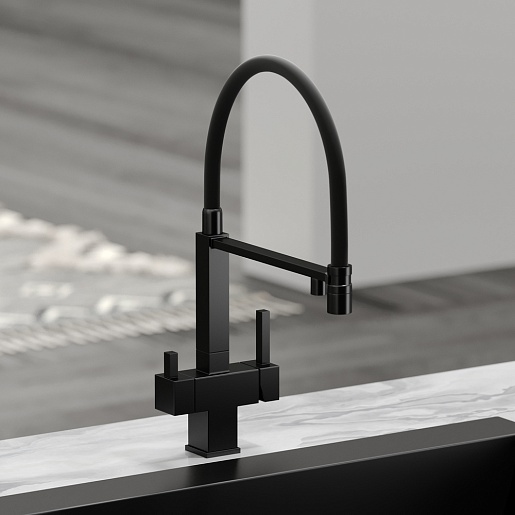 - Гибкий излив более маневренный, чем обычный, и позволяет настроить высоту и угол излива под любые нужды.