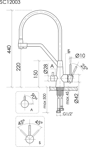 Sancos Смеситель для кухни Nolia нержавеая сталь SC12003SS
