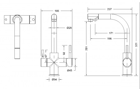 - Подача питьевой воды: через совмещенный излив.