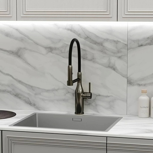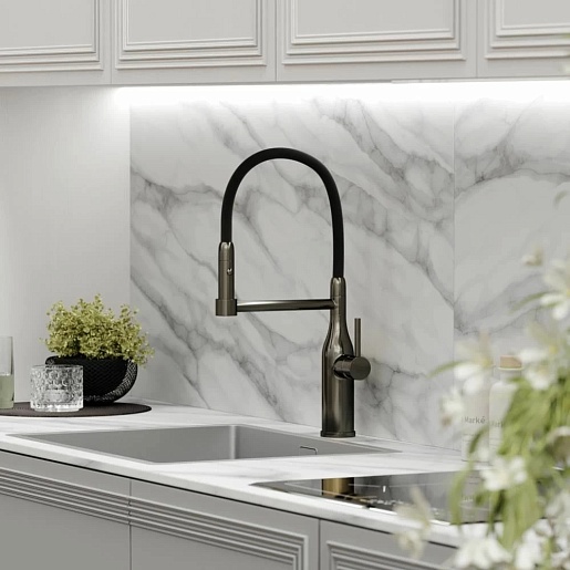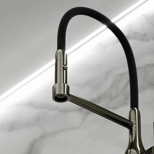 - Гибкий излив более маневренный, чем обычный, и позволяет настроить высоту и угол излива под любые нужды.
