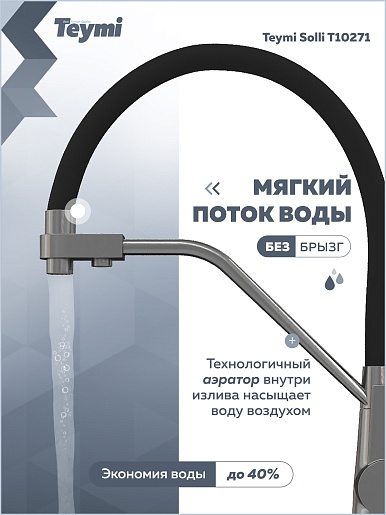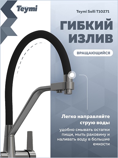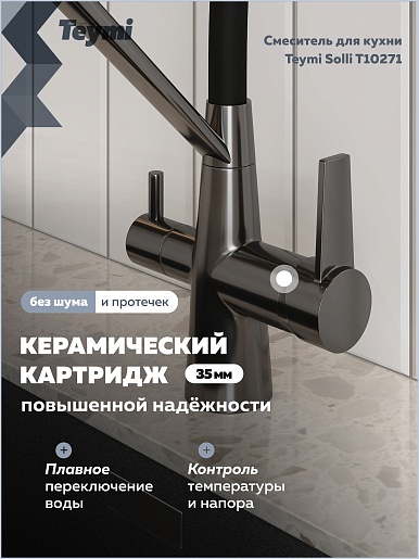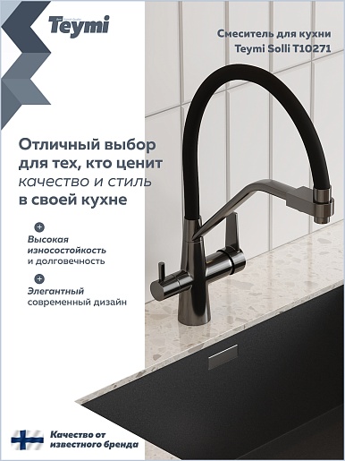 Teymi Смеситель для кухни Solli T10271 оружейная сталь/черный
