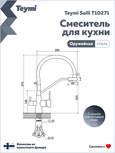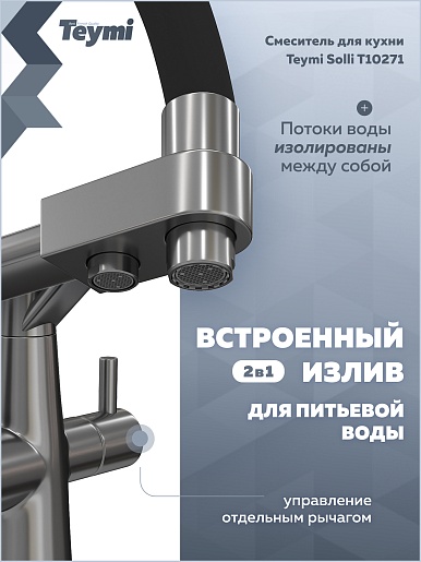 Смеситель для кухни Teymi Solli T10271 оружейная сталь - арт. T10271.