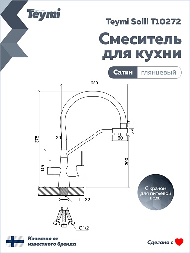 Смеситель для кухни Teymi Solli T10272 сатин - арт. T10272.