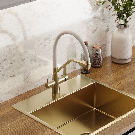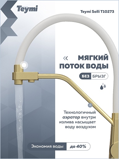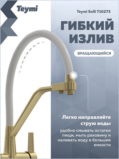 Teymi Смеситель для кухни Solli T10273 золото матовое/белый