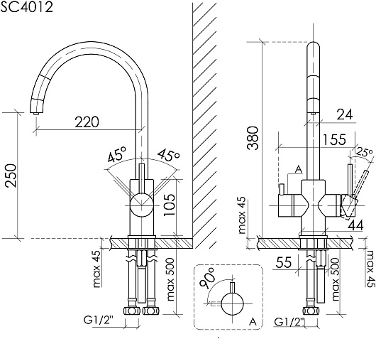 - Смеситель для кухни Sancos Taper, с краном под фильтр для питьевой воды.