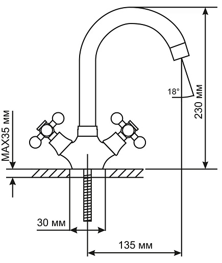 - Поворотный излив позволяет повернуть смеситель для удобства использования раковины.