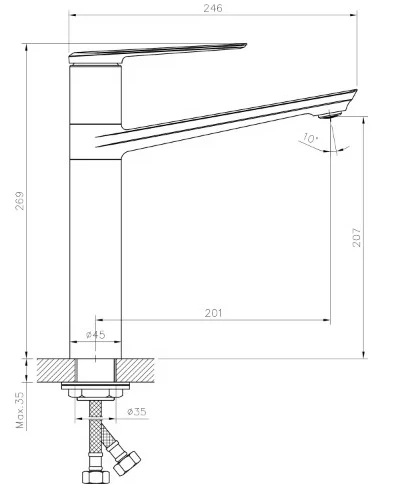 Mixline Смеситель для раковины 35k ML25-042 "Real" хром высокий излив