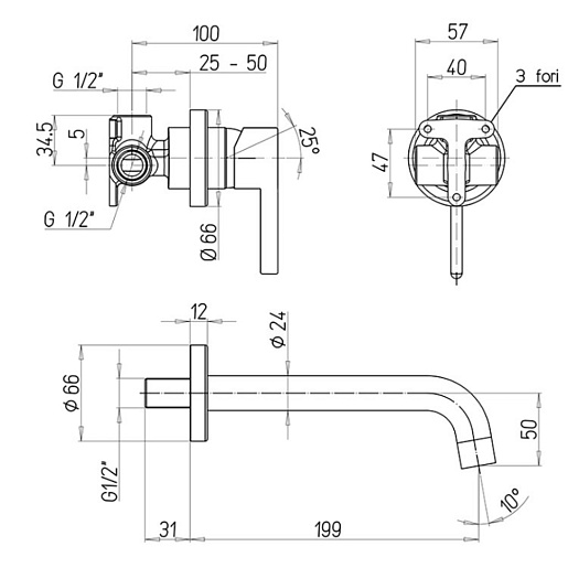 Paini Смеситель для раковины Brera 74CR208 встраиваемый, хром