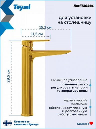 Teymi Смеситель для раковины чаши Kati T10281 золото