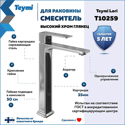 Teymi Смеситель для раковины чаши Lori T10259 хром