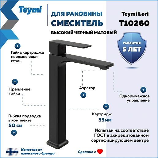 Teymi Смеситель для раковины чаши Lori T10260 черный матовый